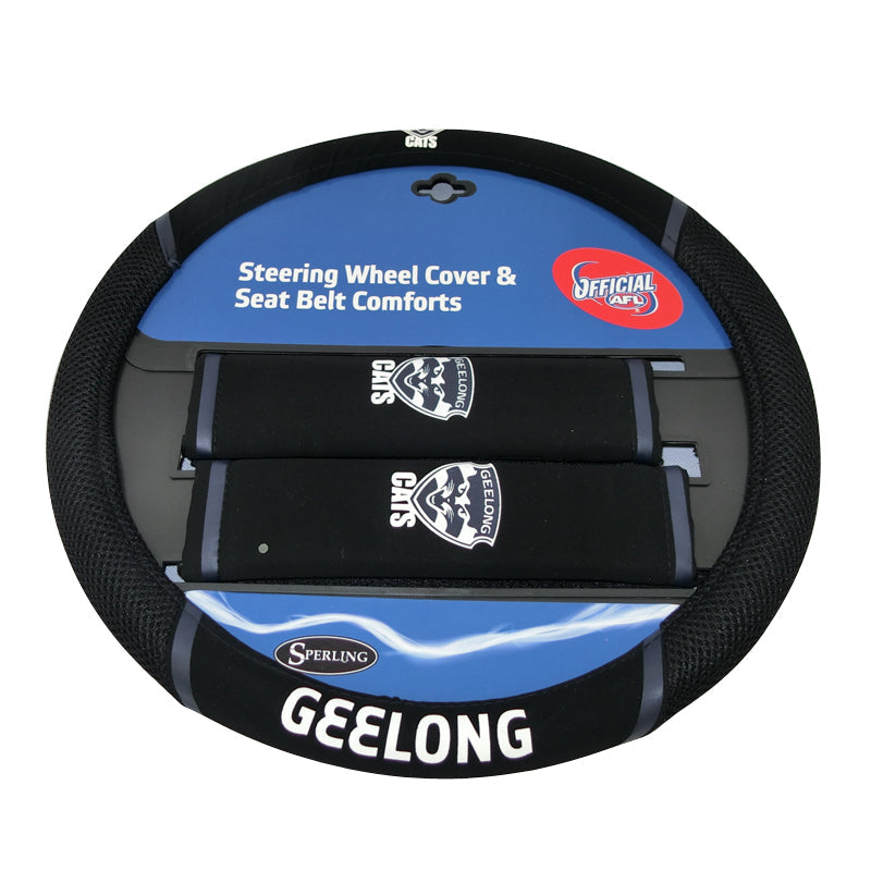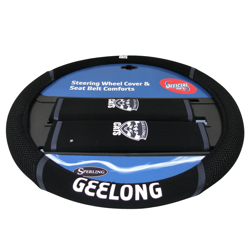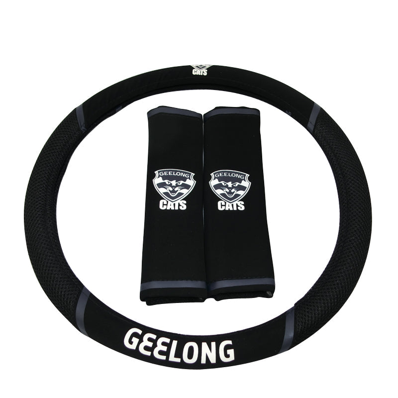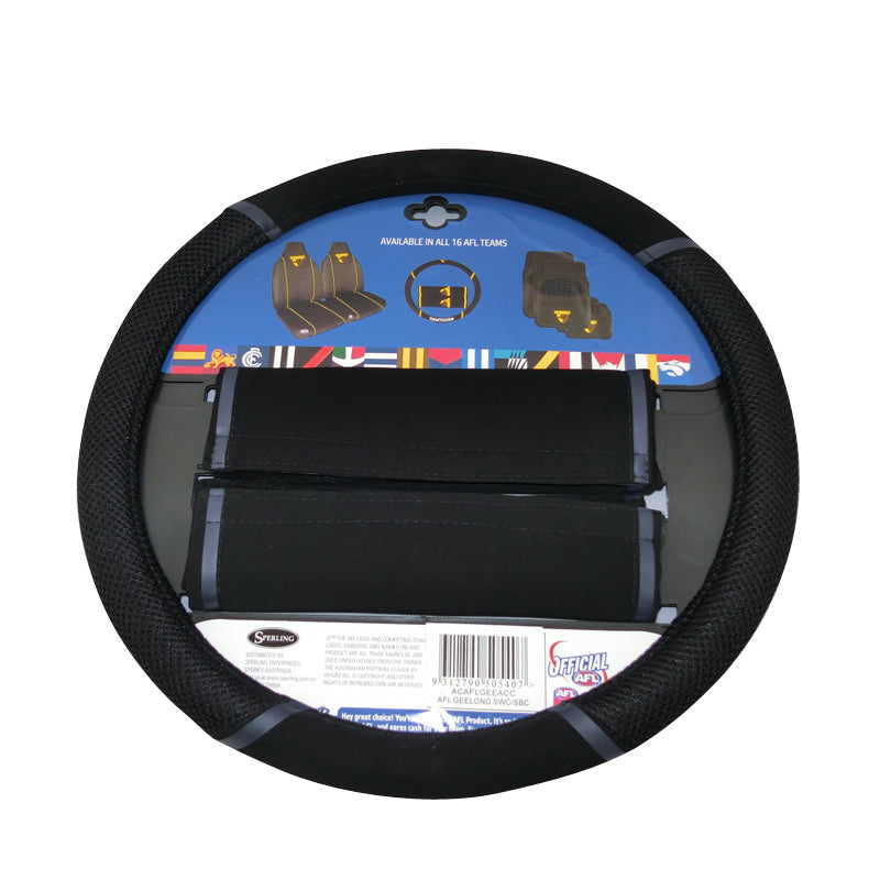 - AFL Steering Wheel Cover with bonus seat belt pads, Geelong Cats.