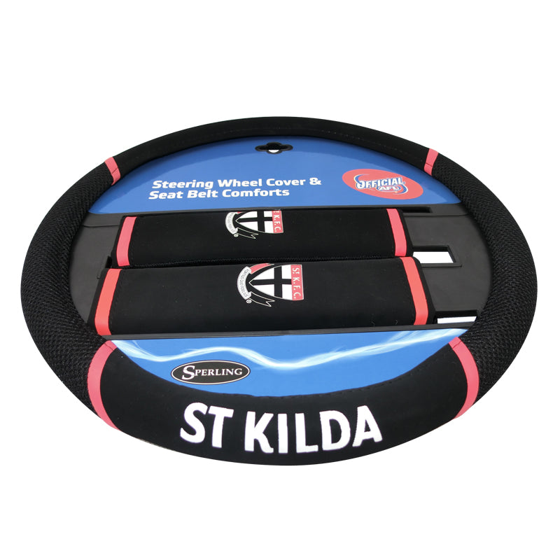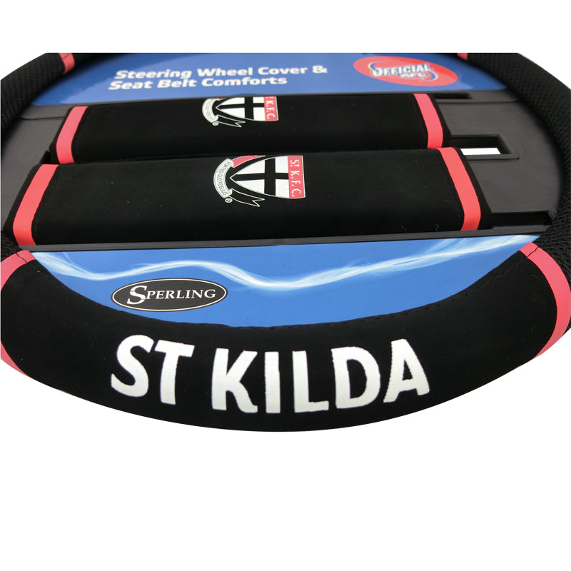 - AFL Steering Wheel Cover with bonus seat belt pads, St Kilda.