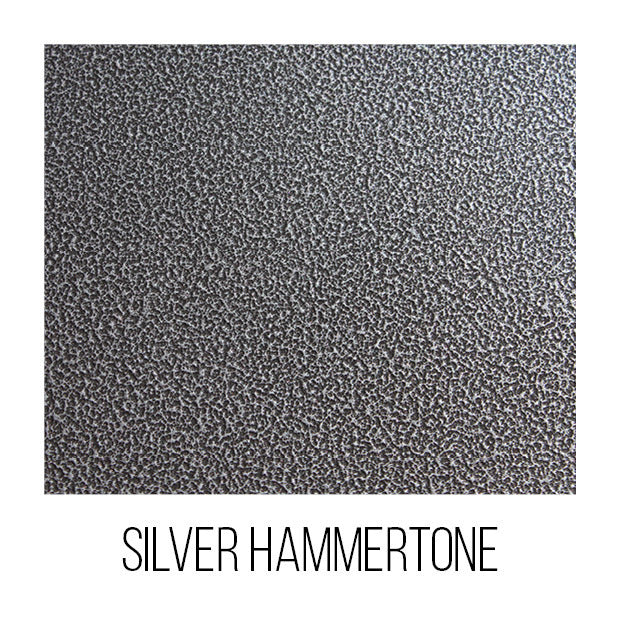 Available in 5 finishes: Silver hammertone powder coat, Black ripple powder coat, Silver ripple powder coat, Textura black and polished.