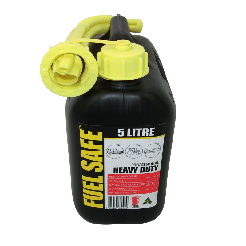 Fuel Safe' Heavy Duty Plastic Fuel Can 5 Litre Black JCAN5LTBLK