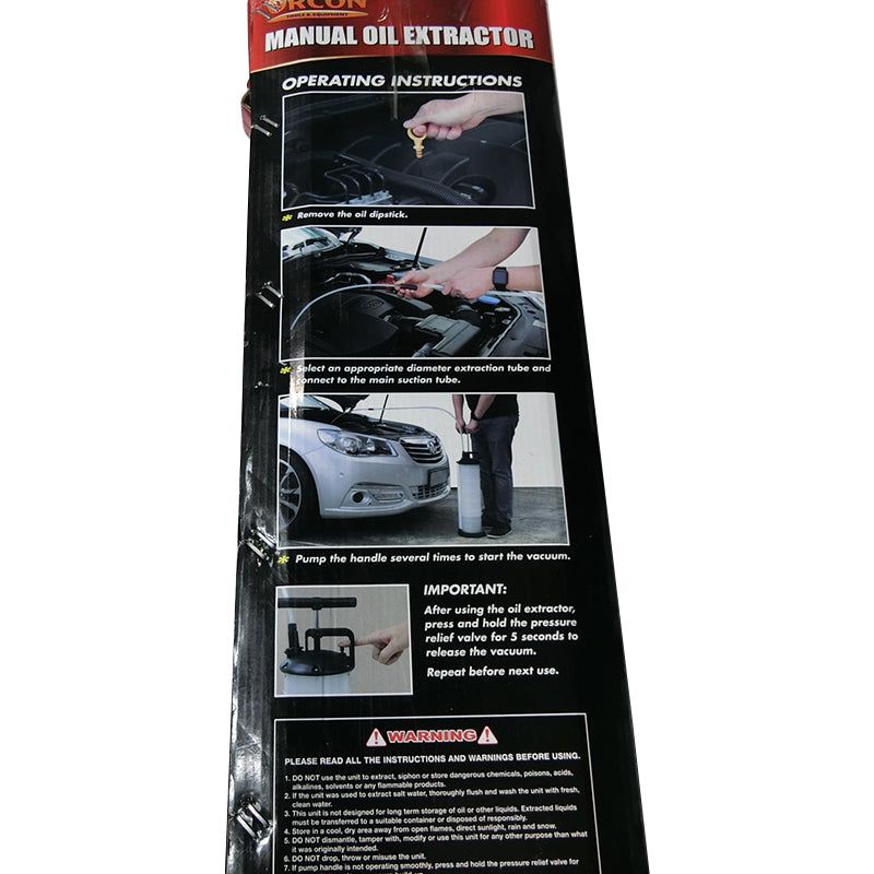 This quality 6.5L oil extractor creates a suction vacuum to extract or change engine oils or lubricants through the dipstick tube.