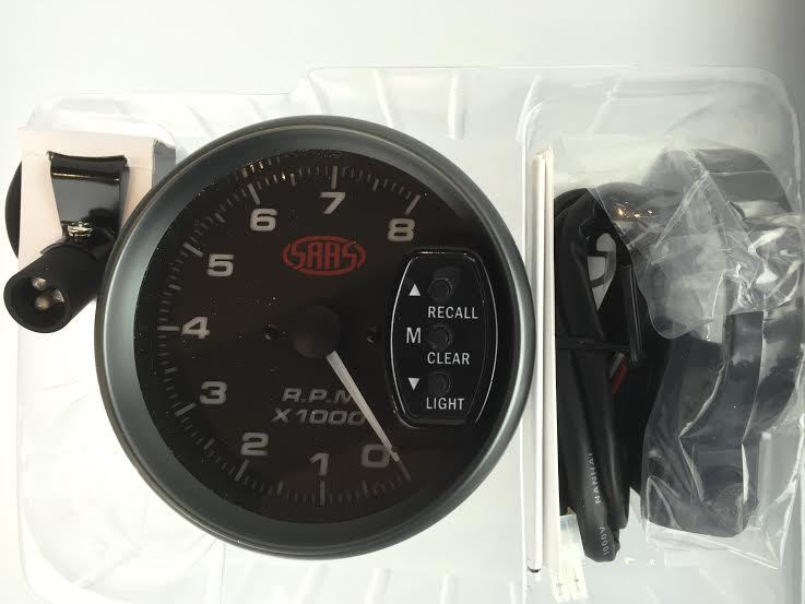 Saas 3 3/4 Inch Tacho Tachometer Gauge Led Shift Light Black 8,000 RPM SG-TAC334B