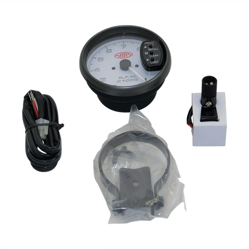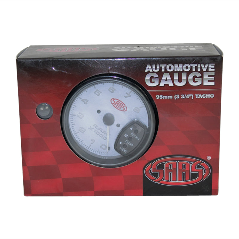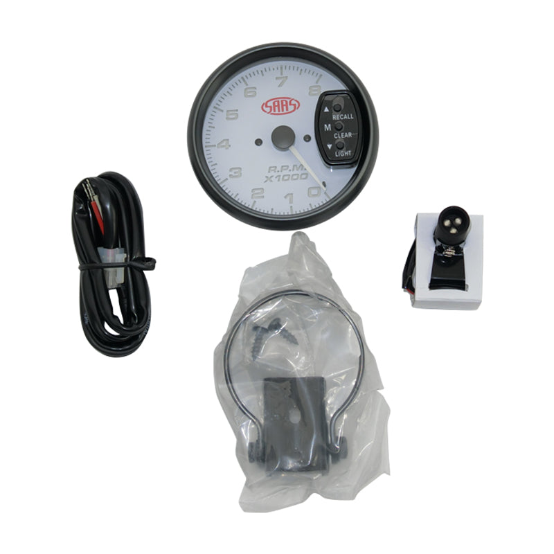 Saas 3 3/4 Inch Tacho Tachometer Gauge Shift Led Light White SG-TAC334W