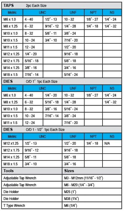Tap & Die Set - 110Pc Metric & Sae With Four