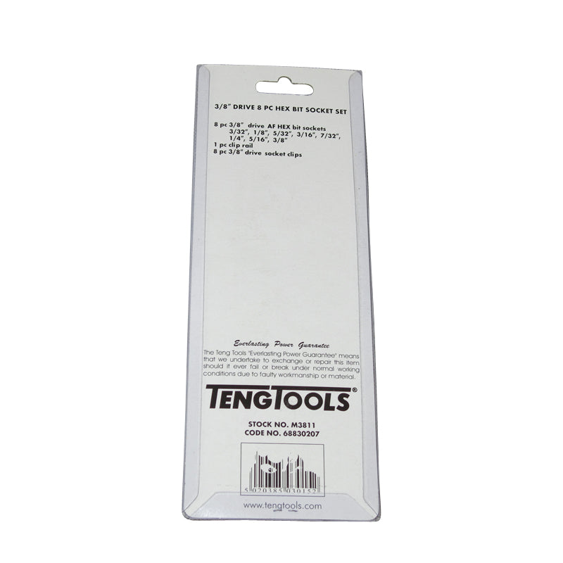 8 piece 3/8" drive AF hex bit sockets supplied on a clip rail.